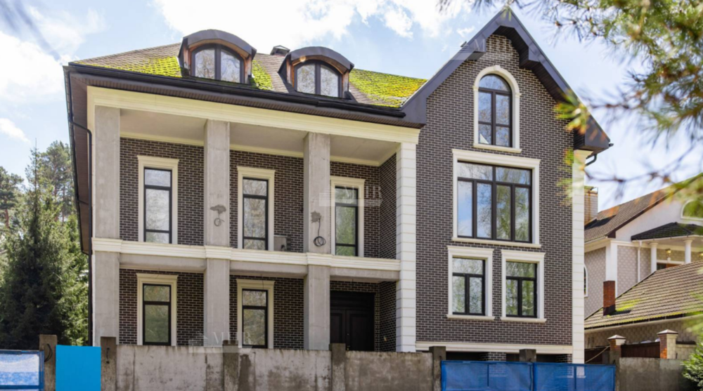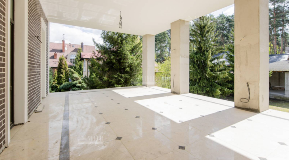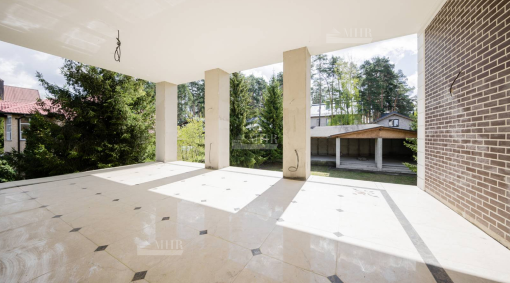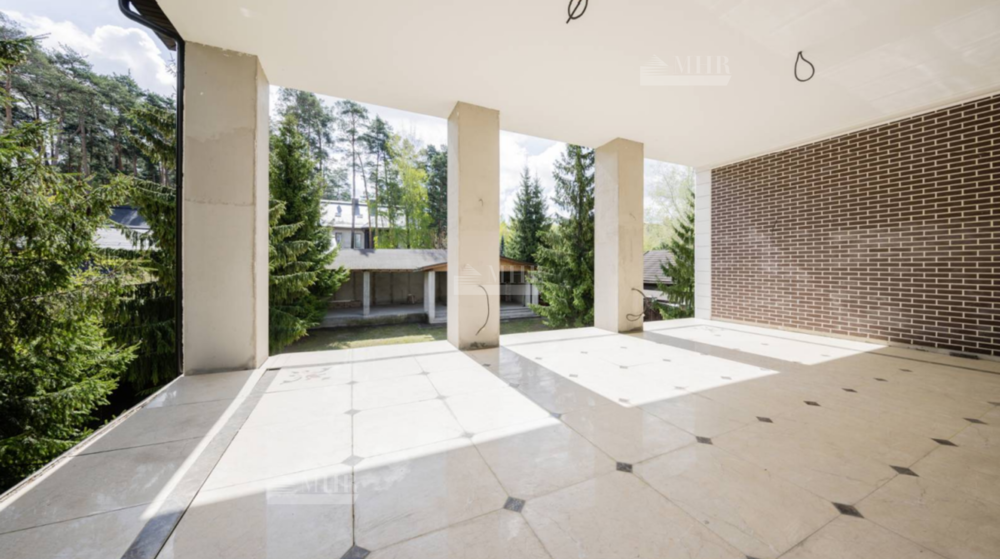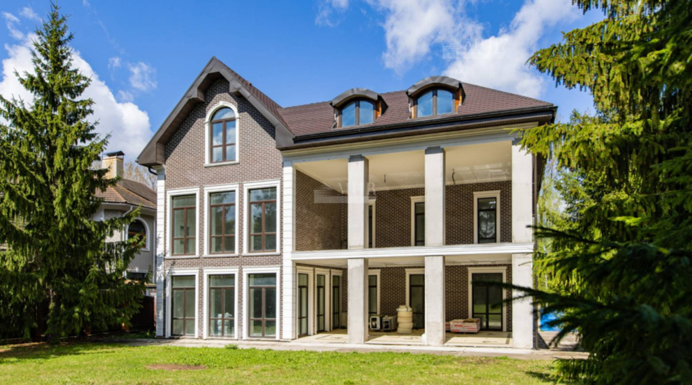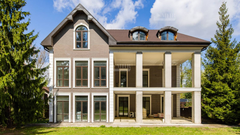 К продаже предлагается просторный загородный дом , построенный на ровном полевом участке 15 соток без ландшафтного дизайна. Фасад в европейском стиле облицован коричневой клинкерной плиткой и натуральным камнем по цоколю, декорирован белыми наличниками и колоннами. В коттедже без отделки спланировали несколько спален, гостиную, кухню, кабинет, кинотеатр, спортзал, парилку и гараж. Укрыться от солнца и отдохнуть на свежем воздухе можно в тени террасы с видом на участок или в беседке.