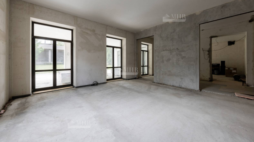 8 спален, со своими санузлами и гардеробными, гостиная, кухня, кабинет, кинотеатр и спортзал. Есть место для бассейна, если это необходимо . В доме высокие потолки и окна в пол.