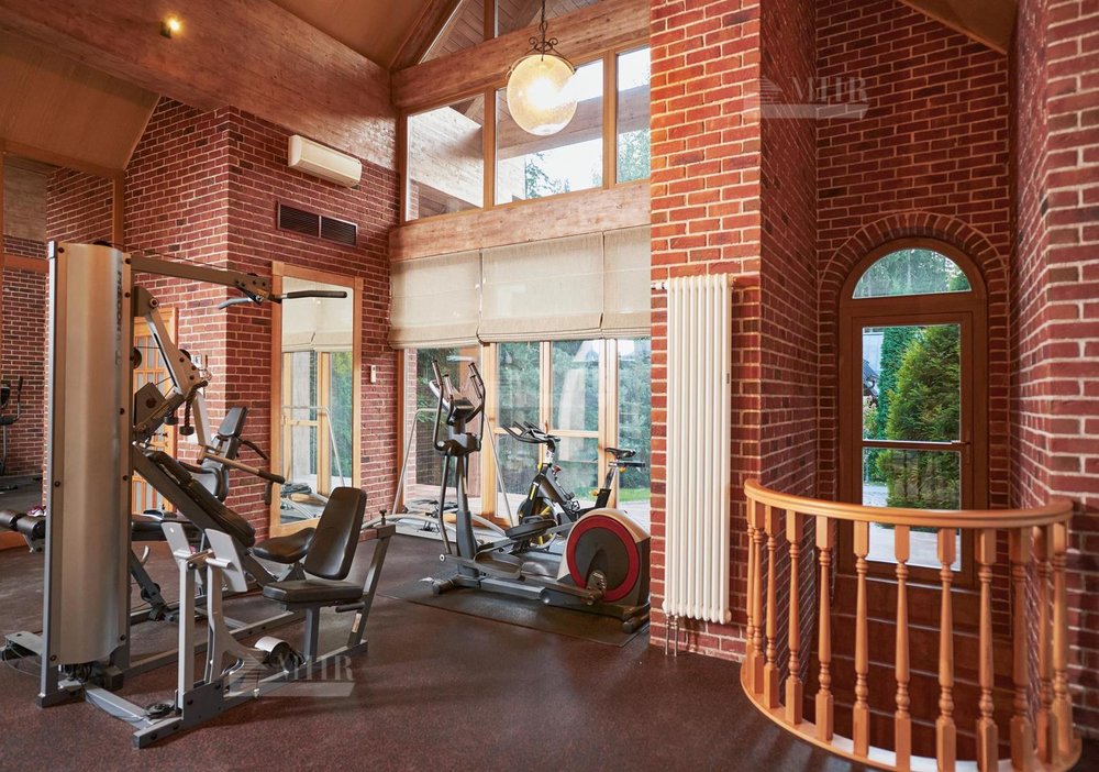 1-й этаж: холл, прихожая, гардеробная, с/у, кухня-столовая, северная веранда для приема гостей, кабинет с выходом на террасу, гостиная с камином, тренажерный зал, с/у, кабинет, хозяйская спальня с гардеробной и с/у и выходом на просторную террасу;