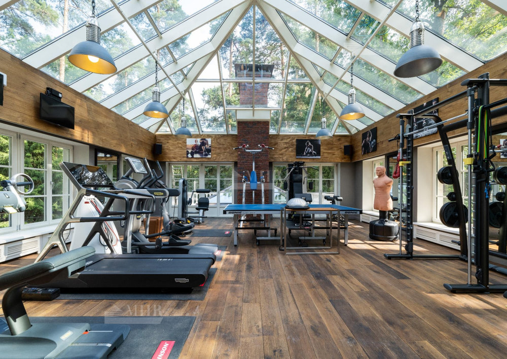 2 этаж: просторный светлый спортзал с соляной комнатой, 4 спальные комнаты и кабинет.