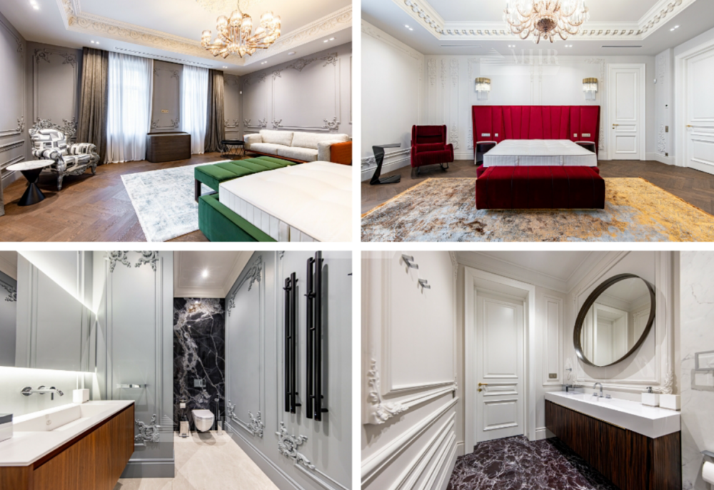 2-й этаж: холл, мастер спальня с гардеробной и ванной комнатой, 2 спальни с гардеробными и туалетными комнатами, библиотека;