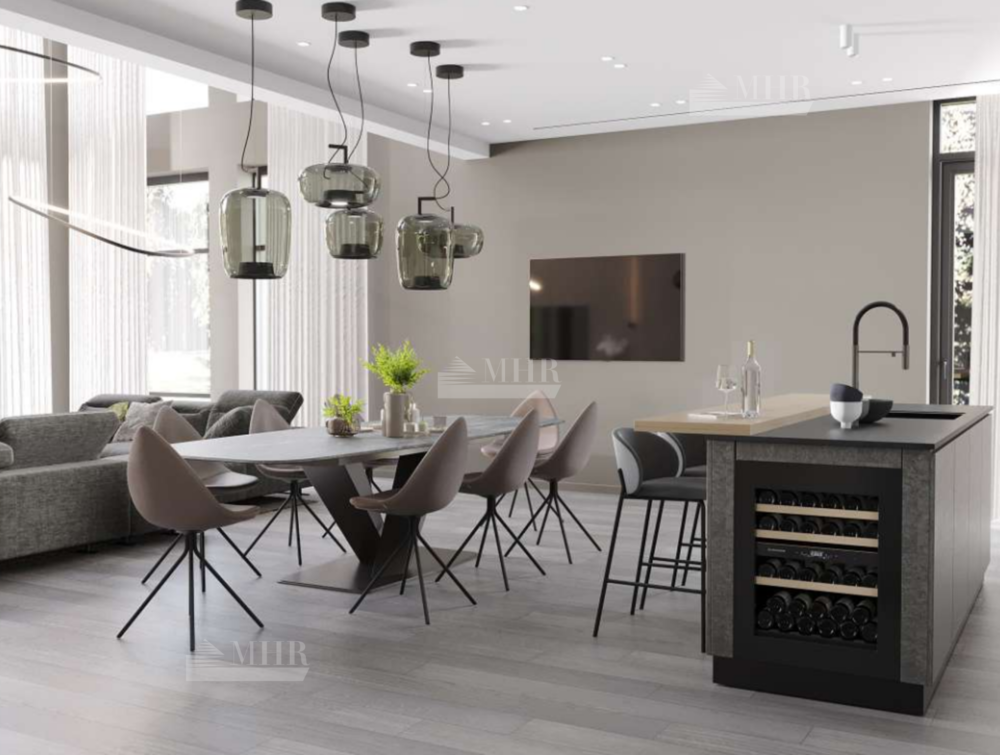 К продаже предлагается дом и строение спа в современной стилистике. Строгие и лаконичные фасады дома дополнены объемом строения спа, что делает композицию застройки участка уравновешенной и гармоничной, и позволяет создать уютное внутреннее пространство.