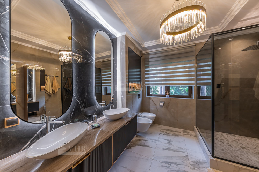 2 этаж: спальня с с/у и гардеробной, кабинет, с/у,2 детские спальни, мастер блок: женская спальня с гардеробной, мужская спальня с гардеробной, с/у.