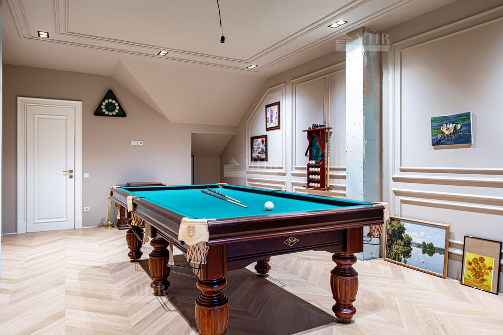 Мансарда: бильярдная, изолированная комната и библиотека.