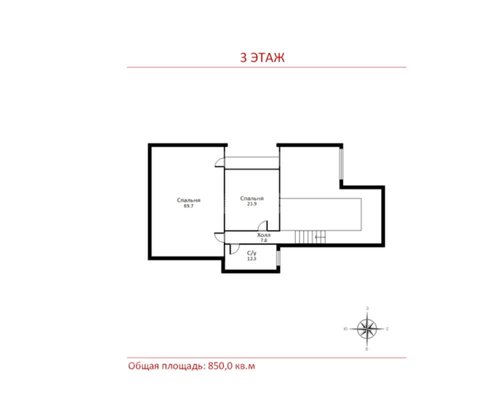 3 этаж: 2 гостевые спальни с гардеробными, 2 с/у; 4 этаж: с/у, спальня большая с гардеробной и балконом, спальня с балконом.