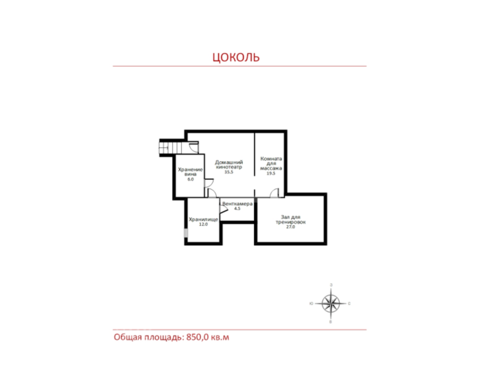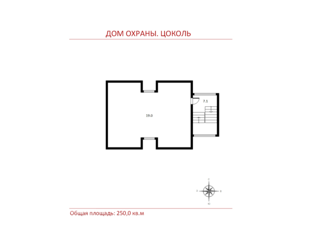Цоколь: винная комната, кинотеатр, комната свободного назначения (кладовая), тренажёрная комната; -1 этаж: с/у, постирочная, гараж на 2 м/м, мастерская, кабинет с выходом во двор (малая комната молельня) с выходом, гостевая спальня;