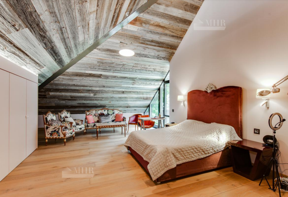 Предлагается на продажу загородный коттедж под ключ. Потолок в гостиной, детской спальне и на втором этаже выполнен из многолетнего дерева (более 120 лет). Фасад дома отделан из медной черепицы с элементами лиственницы. В доме есть вся мебель и техника от известных производителей: мебель от Minotti, кухня от Valcucine, мебель в детской комнате от Creazioni, светильники от Viabizzuno. Премиальная бытовая техника Gaggenau. Кресла от Asnaghi и Creazioni из Италии. Дом оснащен современной инженерией, в цоколе приточная вентиляция. Немецкая система отопления De Dietrich.
