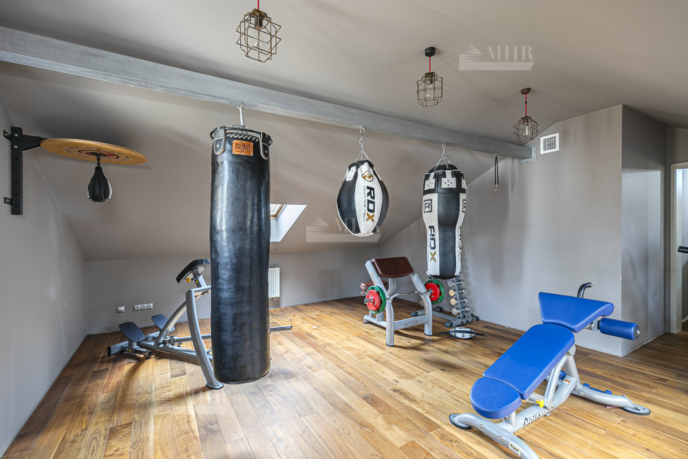 2-й этаж: 4 спальни, 2 санузла, тренажерный зал, гардеробная, балкон;