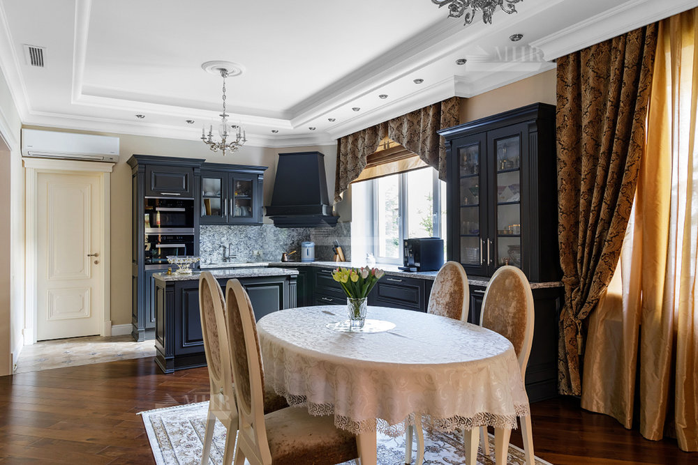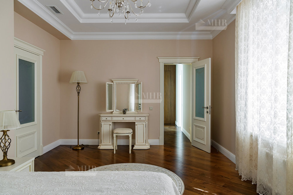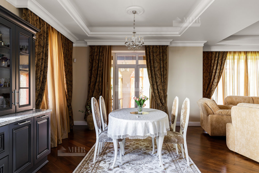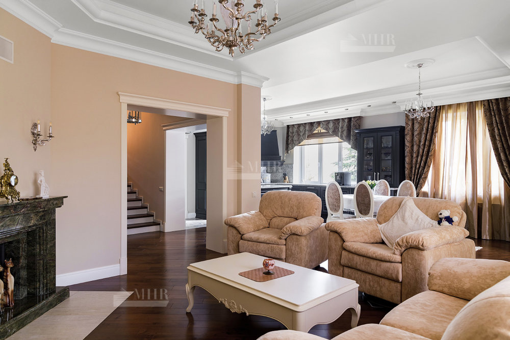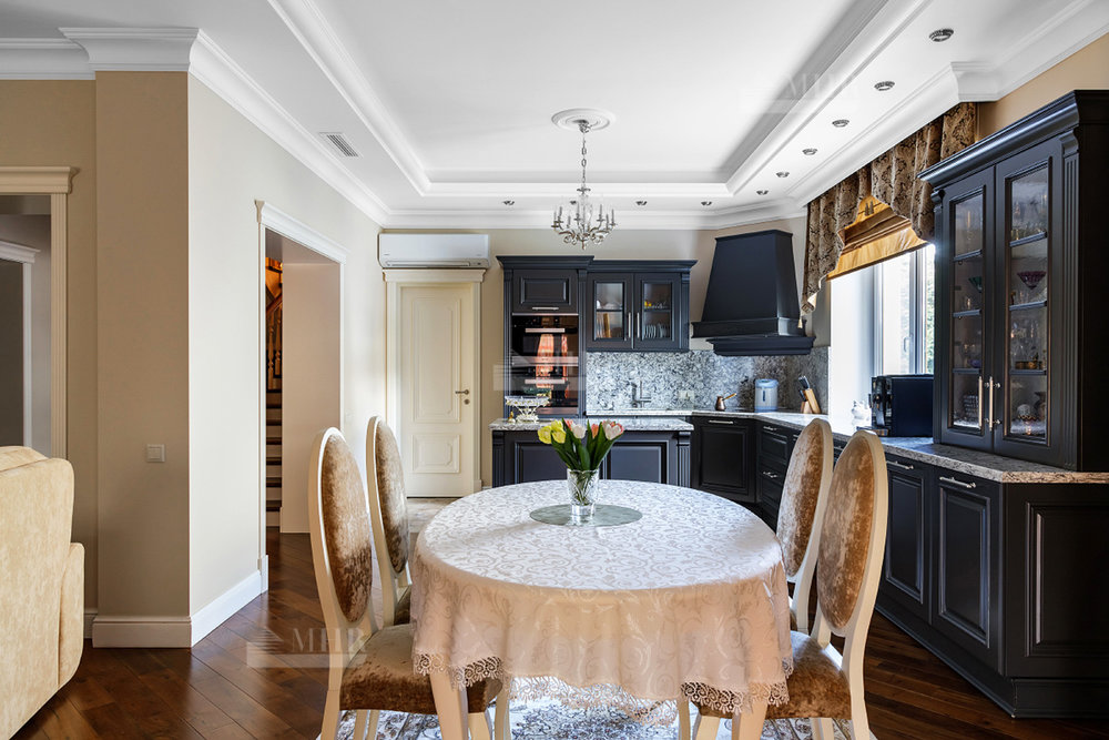 Полностью готов к всесезонному и комфортному проживанию: выполнен качественный современный ремонт под ключ с использованием дорогих премиальных материалов (полы - канадский орех, итальянская плитка и т.д.), меблирован, укомплектован необходимой для проживания техникой (Miele и др.).