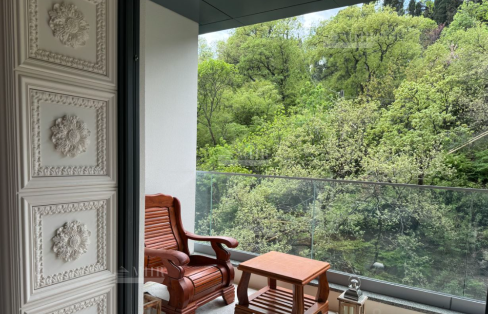 С лоджии открывается шикарный вид на лес и горы, где можно будет наслаждаться теплыми вечерами!