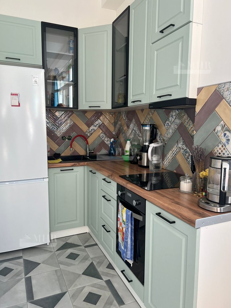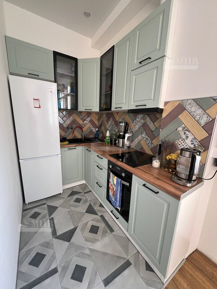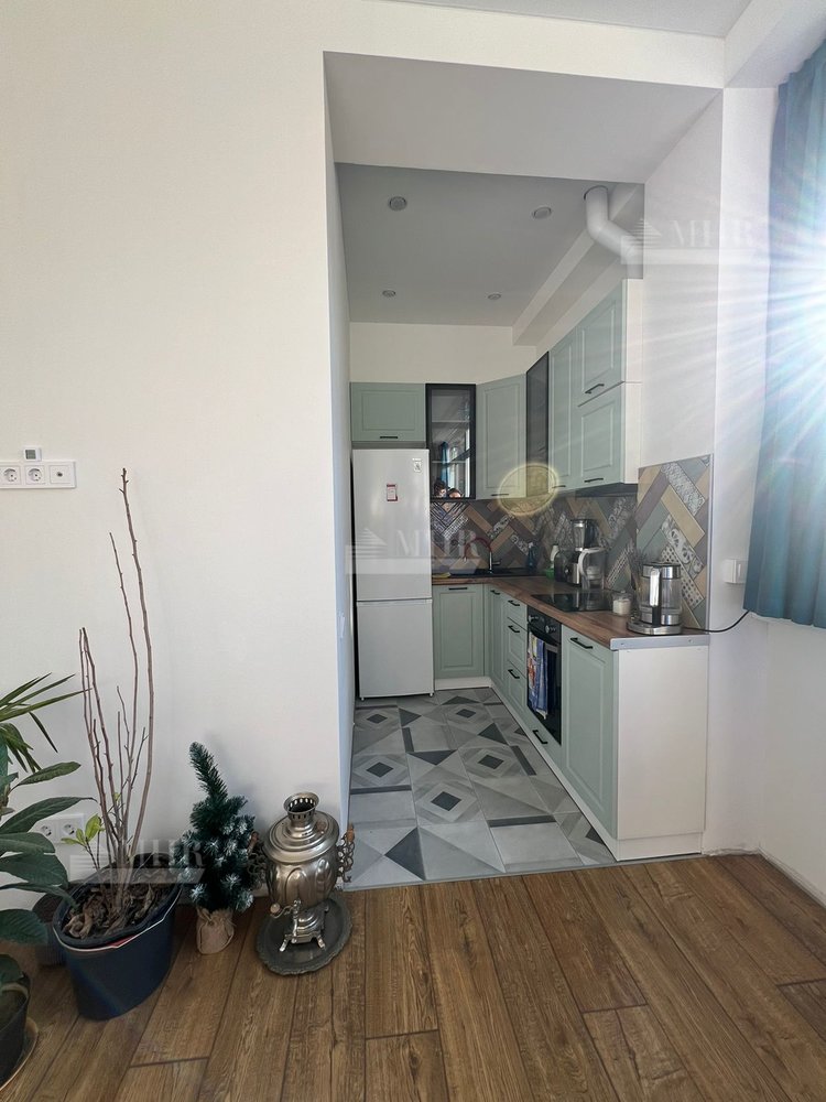 - Современная меблировка: Все необходимое уже здесь — новая кухня, холодильник, стиральная машина, диван-кровать и вместительный шкаф и гардероб.