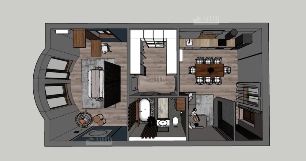 Квартира имеет все необходимые удобства для комфортного проживания. Общедомовая терраса с лаунж-зоной и открытым бассейном – это отличное место для отдыха на свежем воздухе, где вы можете наслаждаться солнечными днями и вечерними закатами с друзьями и близкими.